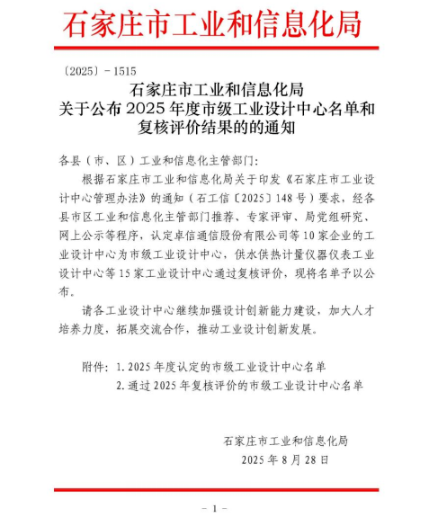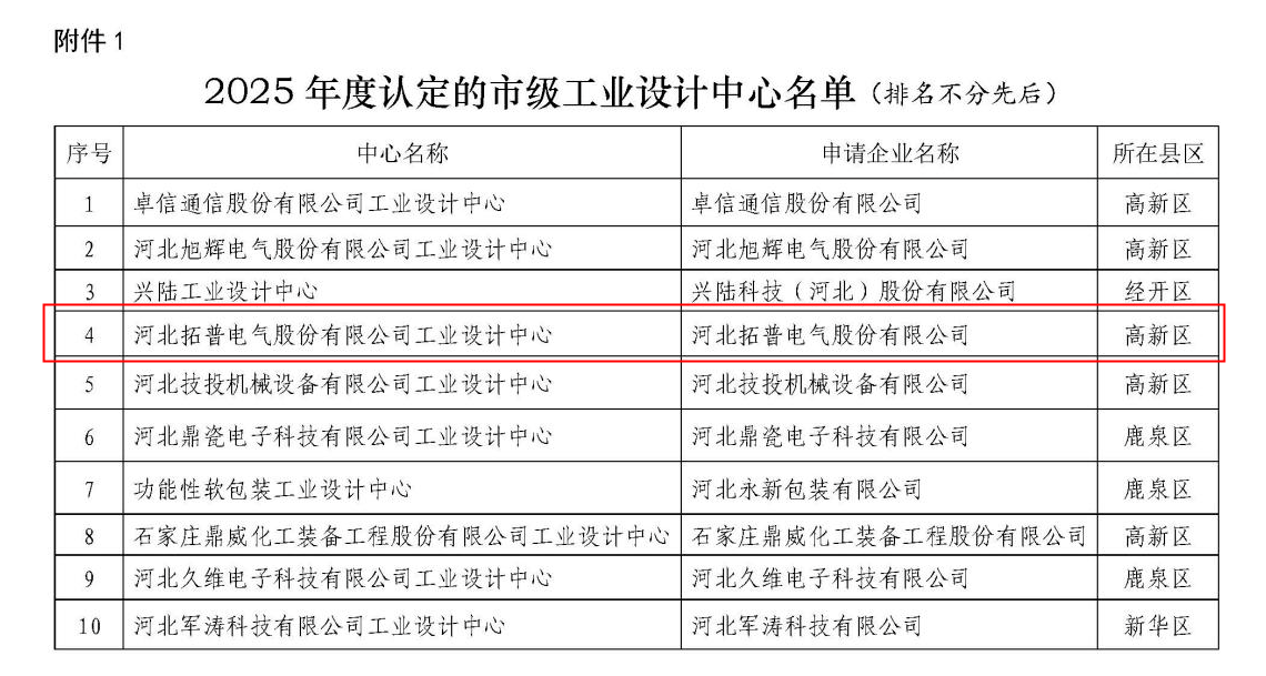 喜报!河北拓普电气荣获“石家庄市级工业设计中心”称号